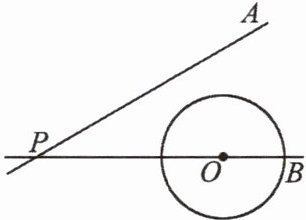 12. 如图,$ \angle APB= 30^{\circ} $,圆心 $ O $ 在直线 $ PB $ 上,$ \odot O $ 的半径为 1 cm,$ OP= 3 $ cm。若 $ \odot O $ 沿 $ BP $ 方向移动,当 $ \odot O $ 与直线 $ PA $ 相切时,圆心 $ O $ 移动的距离为