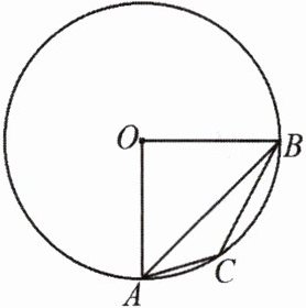 8. 如图,在 $ \odot O $ 中半径 $ OA $,$ OB $ 互相垂直,点 $ C $ 在劣弧 $ AB $ 上。若 $ \angle ABC= 18^{\circ} $,则 $ \angle BAC $ 等于(