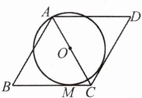 21. (8 分)如图,点 $ O $ 是菱形 $ ABCD $ 对角线上一点,以点 $ O $ 为圆心,$ OA $ 长为半径的 $ \odot O $ 与 $ BC $ 相切于点 $ M $。