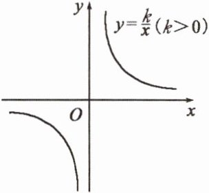 一般地,当 $ k > 0 $ 时,对于反比例函数 $ y = \frac{k}{x} $,由函数图象(见下图),并结合解析式,我们可以发现: