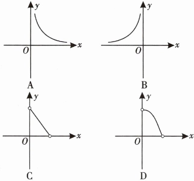 4. 数学课外兴趣小组的同学每人需要制作一个面积为 $ 200 cm^2 $ 的矩形学具进行展示. 设矩形的宽为 $ x cm $, 长为 $ y cm $, 那么这些同学制作的矩形的长 $ y cm $ 与宽 $ x cm $ 之间的函数关系图象大致是(