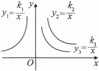 6. 三个反比例函数图象的分支如图所示, 则 $ k_1, k_2, k_3 $ 的大小关系是