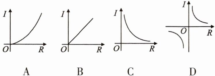 1. 已知电流 I、电压 U、电阻 R 之间的关系为 I = $\frac{U}{R}$.当电压为定值时,I 关于 R 的函数图象是(