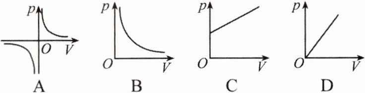 2. 某气球内充满了一定质量 m 的气体,当温度不变时,气球内的气压 p(单位:kPa)是气体体积 V(单位:m^3)的反比例函数,p = $\frac{m}{V}$.能够反映两个变量 p 和 V 函数关系的图象是(