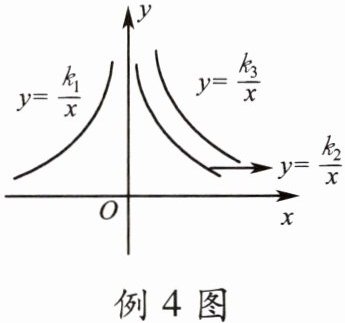 例 4 如图,是三个反比例函数 $ y= \frac{k_{1}}{x} $,$ y= \frac{k_{2}}{x} $,$ y= \frac{k_{3}}{x} $ 在 $ x $ 轴上方的图象,由此观察得到 $ k_{1},k_{2},k_{3} $ 的大小关系为(