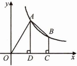 例 5 如图,在平面直角坐标系中,$ O $ 为坐标原点,点 $ A(2,4) $,$ B $ 在函数 $ y= \frac{k}{x}(x>0) $ 的图象上,过点 $ A $ 作 $ AD\perp x $ 轴于点 $ D $,过点 $ B $ 作 $ BC\perp x $ 轴于点 $ C $,连接 $ OA $,$ AB $.