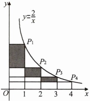 5. 在反比例函数 $ y= \frac{2}{x}(x>0) $ 的图象上有点 $ P_{1},P_{2},P_{3},P_{4} $,它们的横坐标依次为 $ 1,2,3,4 $,分别过这些点作 $ x $ 轴与 $ y $ 轴的垂线,图中所构成的阴影部分的面积从左到右依次为 $ S_{1},S_{2},S_{3} $,则 $ S_{1}+S_{2}+S_{3}= $