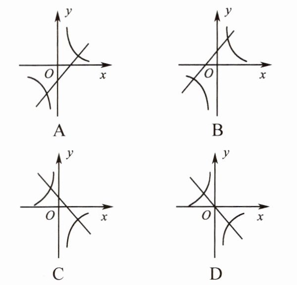 10. 函数 $ y = x + m $ 与 $ y= \frac{m}{x}(m\neq0) $ 在同一坐标系内的图象可以是(