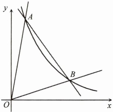 11. 如图,点 $ A $ 在反比例函数 $ y= \frac{2}{x}(x>0) $ 的图象上,以 $ OA $ 为一边作等腰直角三角形 $ OAB $,其中 $ \angle OAB = 90^{\circ} $,$ AO = AB $,则线段 $ OB $ 长的最小值是(