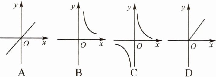 6. 矩形面积为 $ 4 $,它的长 $ y $ 与宽 $ x $ 之间的函数关系用图象大致可表示为(