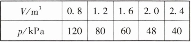 19. (12 分)在研究气体压强和体积关系的物理实验中,一个气球内充满了一定质量的气体,实验中气体温度保持不变,实验人员记录了实验过程中气球内的气体压强 $ p $(单位:kPa)与气体体积 $ V $(单位:$ m^3 $)的数据如下表: