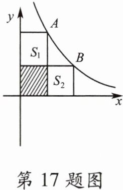 17. 如图,点 $ A $,$ B $ 是双曲线 $ y = \frac{3}{x} $ 上的点,分别经过 $ A $,$ B $ 两点向 $ x $ 轴,$ y $ 轴作垂线段. 若 $ S_{阴影} = 1 $,则 $ S_1 + S_2 = $