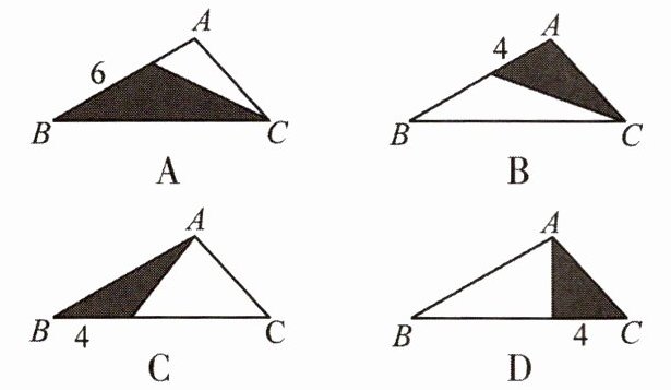 2. 如图,在三角形纸片$ABC$中,$A B = 9$,$A C = 6$,$B C = 12$,图中剪下的涂色部分的三角形与$\triangle A B C$相似的是(