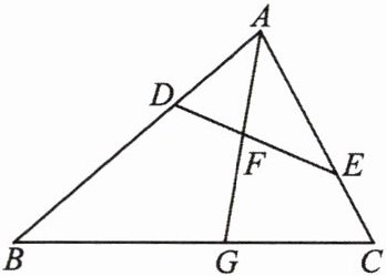 2. 如图,在$\triangle A B C$中,点$D$,$E分别在边AB$,$AC$上,$\angle A E D = \angle B$,射线$AG分别交线段DE$,$BC于点F$,$G$,且$\frac { A D } { A C } = \frac { D F } { C G }$.