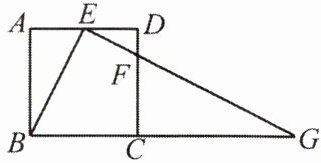 1. 如图,在正方形$ABCD$中,$E$,$F分别是边AD$,$CD$上的点,$A E = E D$,$D F = \frac { 1 } { 4 } D C$,连接$EF并延长交BC的延长线于点G$,连接$BE$.