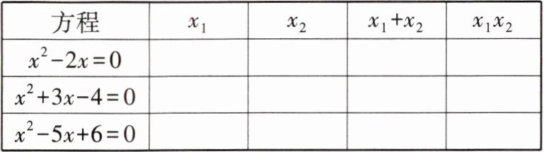 2. 将上面得到的解填到下面的表格中,你发现表格中两个解的和、积与原来的方程有什么联系?