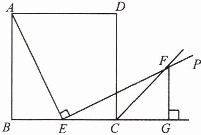 如图,已知边长为 $ 10 $ 的正方形 $ ABCD $,$ E $ 是 $ BC $ 边上一动点(与 $ B $,$ C $ 不重合),连接 $ AE $. $ G $ 是 $ BC $ 延长线上的点,过点 $ E $ 作 $ AE $ 的垂线,交 $ \angle DCG $ 的平分线于点 $ F $,$ FG \perp BG $.
