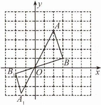 4. 如图,在平面直角坐标系中,每个小方格都是边长为1个单位长度的正方形,已知△AOB与$△A_1OB_1$位似,位似中心为原点O,且相似比为3:2,点A,B都在格点上,则点$B_1$的坐标为