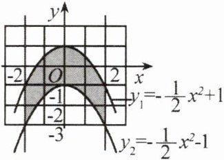 2. 如图,两条抛物线 $ y_1 = -\frac{1}{2}x^2 + 1 $,$ y_2 = -\frac{1}{2}x^2 - 1 $ 与分别经过点 $ (-2, 0) $,$ (2, 0) $,且平行于 $ y $ 轴的两条平行线围成的阴影部分的面积为