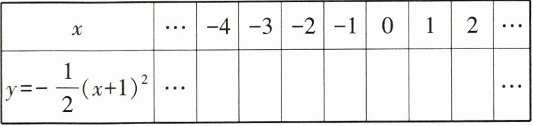 | $ y = -\frac{1}{2}(x + 1)^2 $ | … | -4.5 | -2 | -0.5 | 0 | -0.5 | -2 | -4.5 | … |