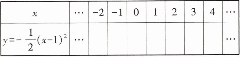 | $ y = -\frac{1}{2}(x - 1)^2 $ | … | -4.5 | -2 | -0.5 | 0 | -0.5 | -2 | -4.5 | … |