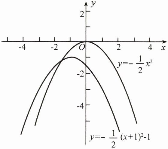 (2)抛物线$y = -\frac{1}{2}(x + 1)^2 - 1与y = -\frac{1}{2}x^2$的形状
