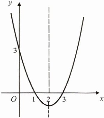 (2) 开口向上;对称轴为直线 $ x = 2 $;顶点坐标为 $ (2,-1) $。
