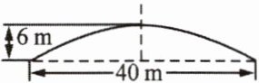 设抛物线顶点坐标为$(0, -6)$,与$x$轴交于$(-20, 0)$和$(20, 0)$,设解析式为$y = ax^2 - 6$。