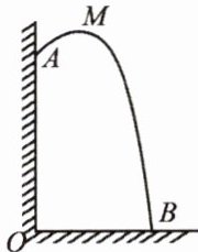 2. 某幢建筑物,从 $ 10 \, m $ 高的窗口 $ A $ 用水管向外喷水,喷出的水呈抛物线状(如图,抛物线所在平面与墙面垂直). 如果抛物线的最高点 $ M $ 离墙 $ 1 \, m $,离地面 $ \frac{40}{3} \, m $,那么水流落地点 $ B $ 离墙(