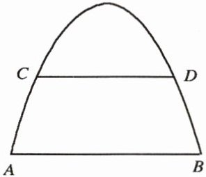 3. 如图是一座抛物线形拱桥,已知水位在 $ AB $ 位置时,水面宽 $ 4\sqrt{6} \, m $,水位上升 $ 3 \, m $ 就达到警戒线 $ CD $,这时水面宽 $ 4\sqrt{3} \, m $. 若洪水到来时,水位以每小时 $ 0.25 \, m $ 的速度上升,求水位超过警戒线后几小时能淹到拱桥顶.