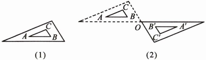 (2) 以三角尺的一个顶点 $O$ 为旋转中心,把三角尺旋转 $180^{\circ}$,画出 $\triangle A'B'C'$。