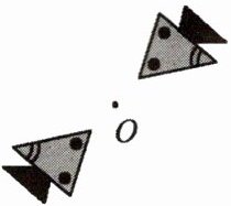 1. 如教科书第 65 页图 23.2 - 3,旋转三角尺,画关于点 $O$ 对称的两个三角形: