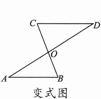 变式 如图,已知 $\triangle AOB$ 与 $\triangle DOC$ 成中心对称,$\triangle AOB$ 的面积是 $12$,$AB = 3$,则 $\triangle DOC$ 中 $CD$ 边上的高为______。