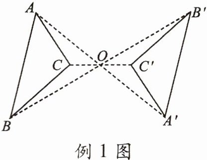 例 2 如图,已知 $\triangle ABC$ 与 $\triangle A'B'C'$ 成中心对称,找出它们的对称中心 $O$。