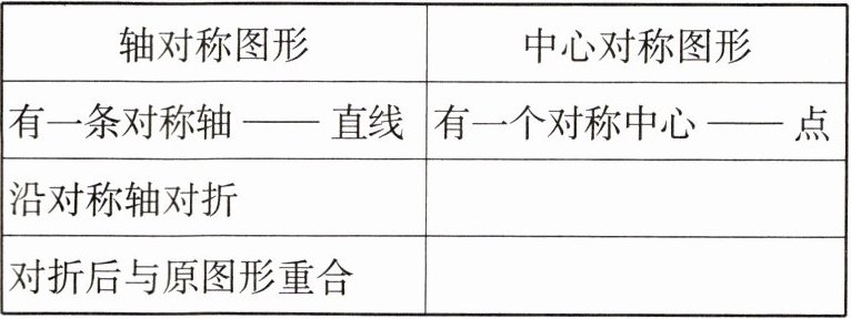 |沿对称轴对折|绕对称中心旋转$180^{\circ}$|