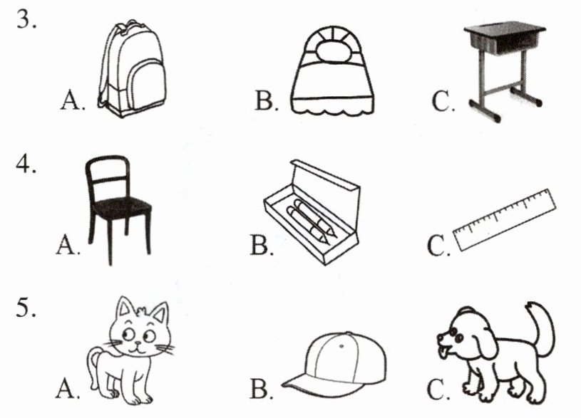 A.录音中有五个句子,从每小题所给的 A、B、C 三个选项中,选出与句子内容相符的图片。(每个句子仅读一遍)