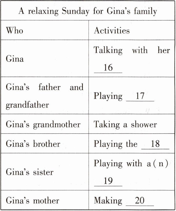 16.uncle 17.chess 18.piano 19.cat 20.soup