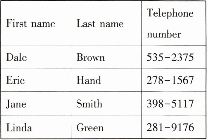1.last 2.Dale's 3.Green 4.Two 5.281-9176