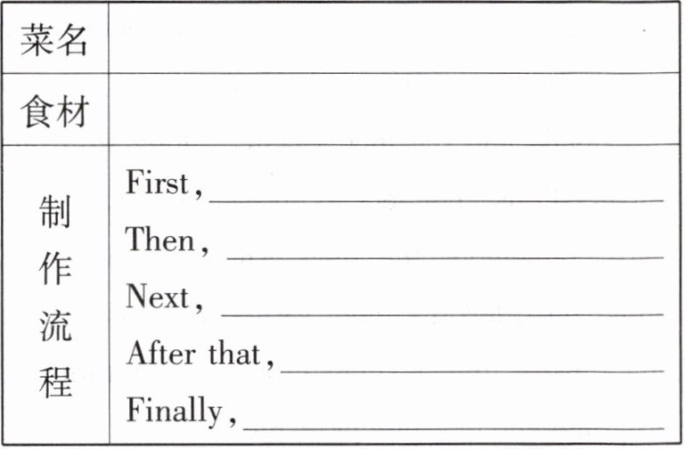 4. 认真观察1d图片,写出相应动词短语。读食谱,根据顺序副词给图片进行排序。然后与同伴核对、交流答案。看着图片与同伴交流南瓜派的食谱:需要准备的材料及制作流程。