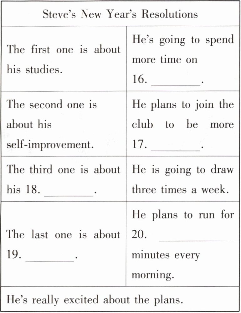 16. maths 17. confident 18. hobbies 19. health 20. thirty / 30
