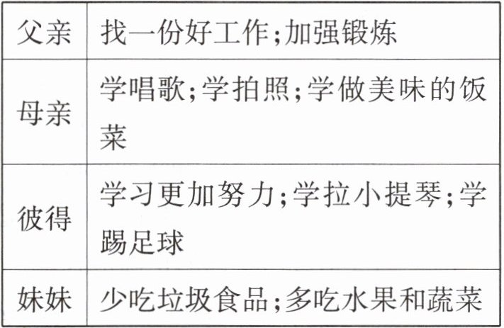 Peter is going to study harder to get good grades. He really likes music, so he is going to practise the violin every day. Besides, he is going to play football with his friends to have fun and stay active.