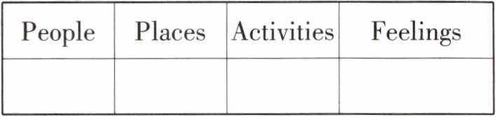 Ⅰ. 回顾刚刚结束的暑假生活,你有哪些难忘的经历?请根据实际情况填写下面的表格,并仿照示例简要谈一下你的假期经历。