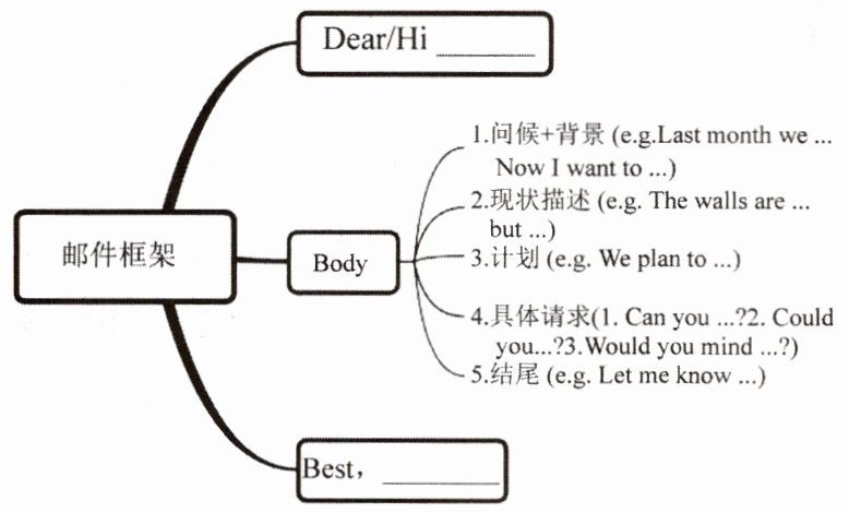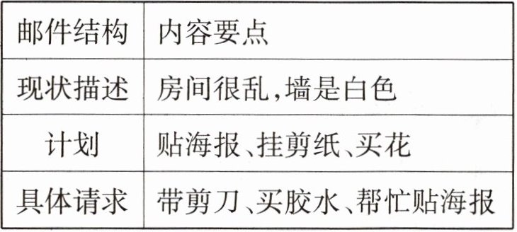 2. 写邮件请求朋友帮忙装饰房间,从以上任务中选择 3—4 项。以下表格可提供帮助:
