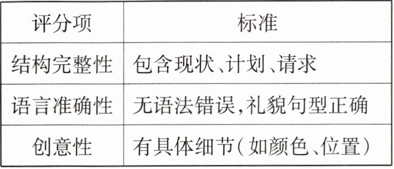 1. 小组分享:每组选 1 篇邮件朗读,全班根据评分表打分(满分 5 分)