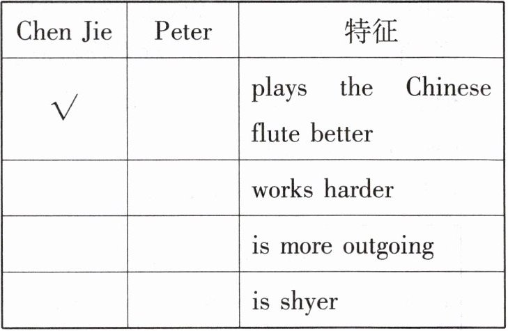 3. 听第一段对话,完成 Chen Jie 和 Peter 的对比表格。