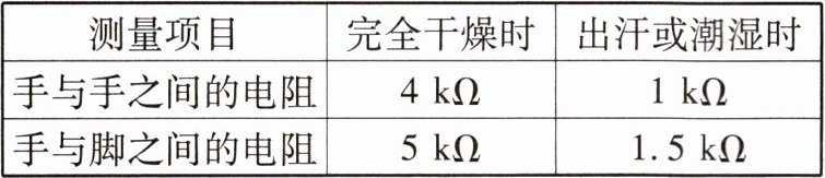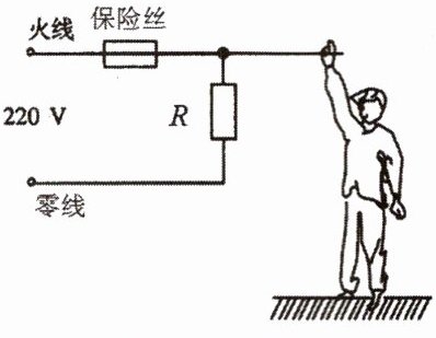 (2)一个潮湿的人赤脚站在地面上,由于不小心,手接触火线,发生触电事故,则通过人体的电流是多少?保险丝会熔断吗?