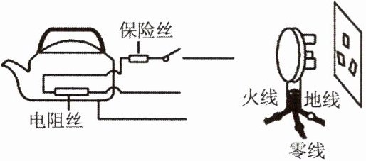 8. 请你试着将如图16-4-16所示电水壶的三条接线按照安全用电的原则对应连接到插头的三根线上。