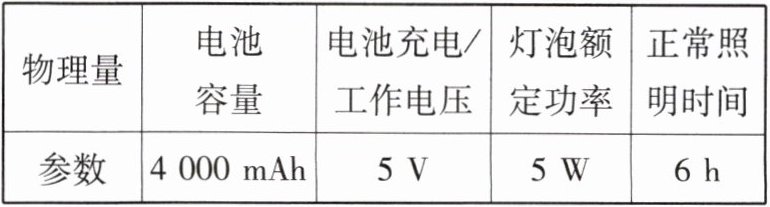 h。|物理量|电池容量|电池充电/工作电压|灯泡额定功率|正常照明时间|