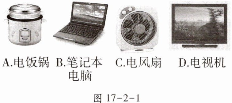 4. 当电路中只有一个用电器工作时,小明测得在15 min内其消耗的电能为0.3 kW·h,则这个用电器可能是如图17 - 2 - 1中的(