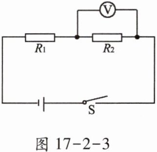 9. 如图17 - 2 - 3所示,电源电压恒为12 V,电阻$R_1$为20 Ω。当开关S闭合后,电压表的示数为8 V。求: